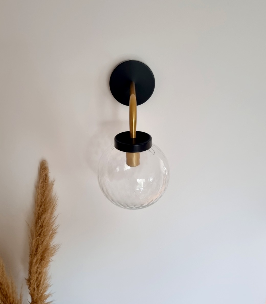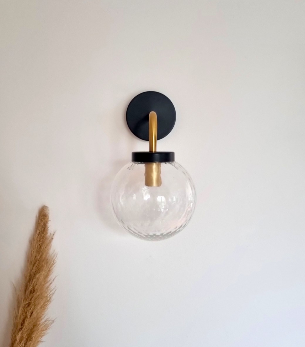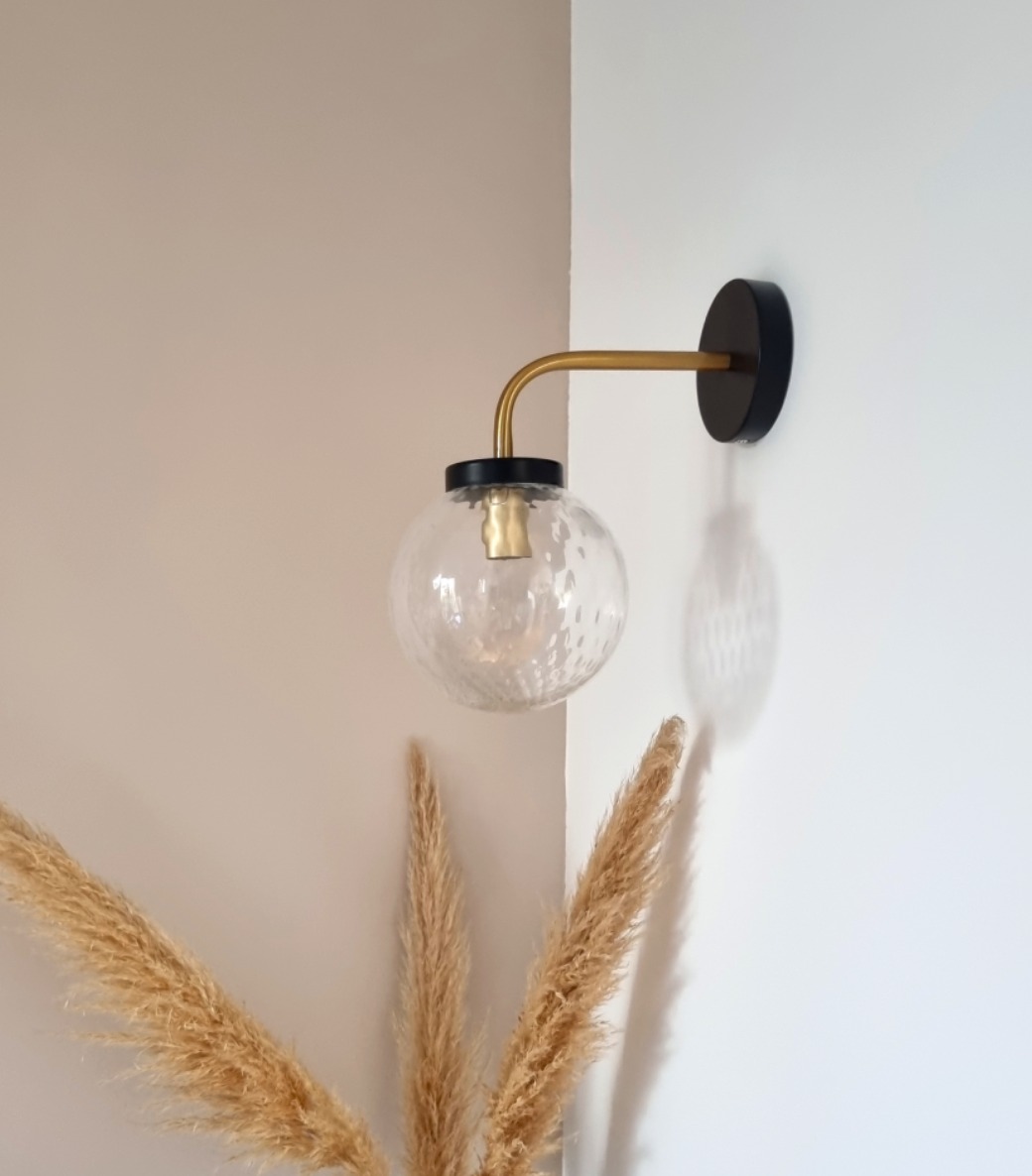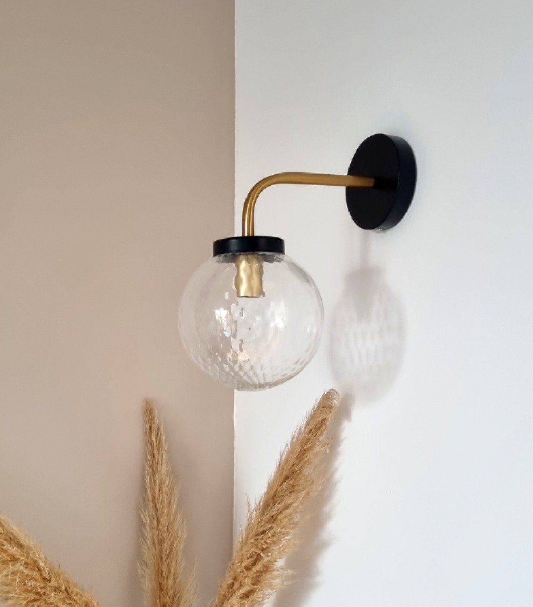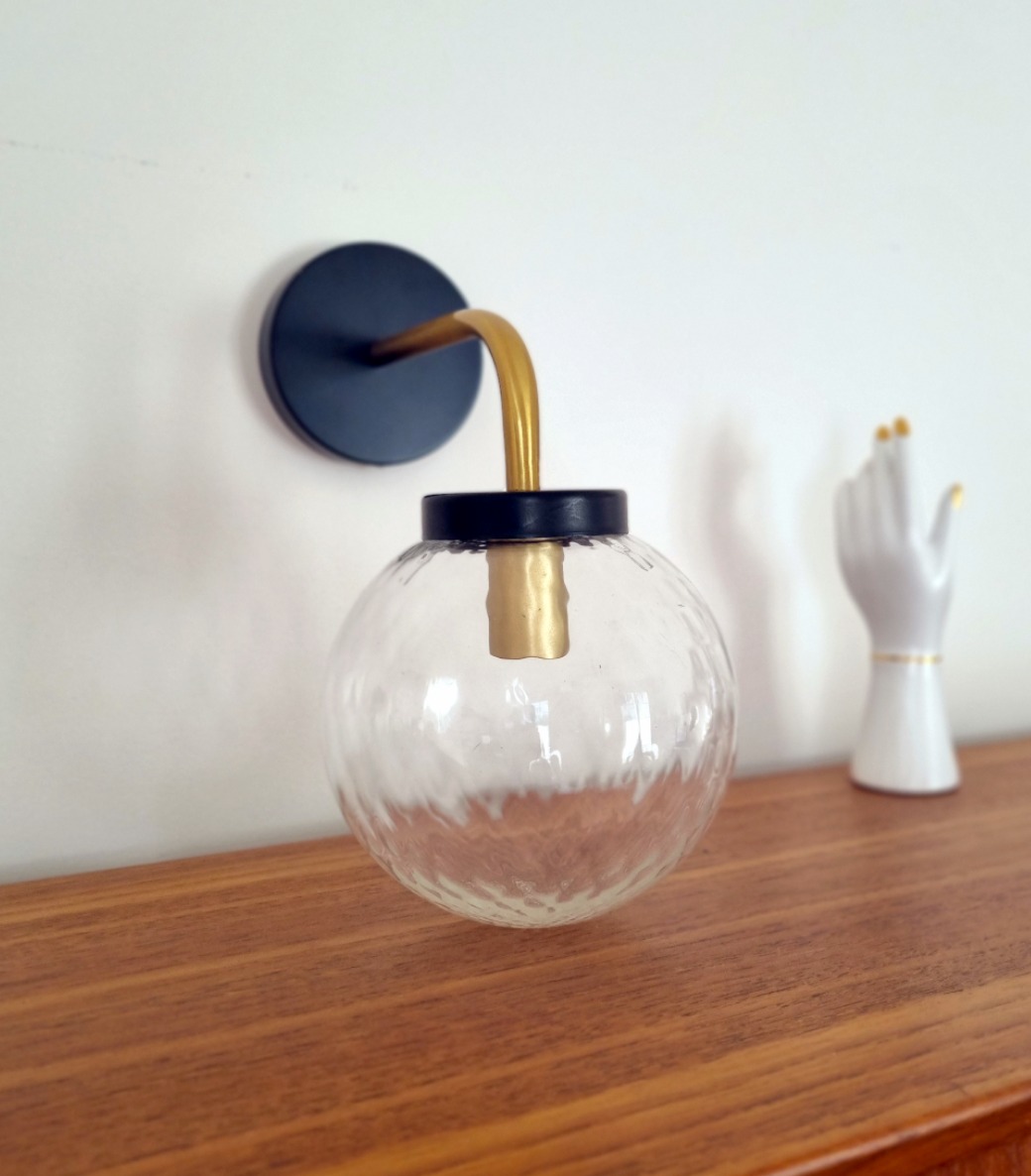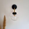 Applique composée d’un globe vintage, d’un pavillon noir et d’une tige en laiton. Un luminaire mural vintage chic qui apportera un cachet unique à votre intérieur.