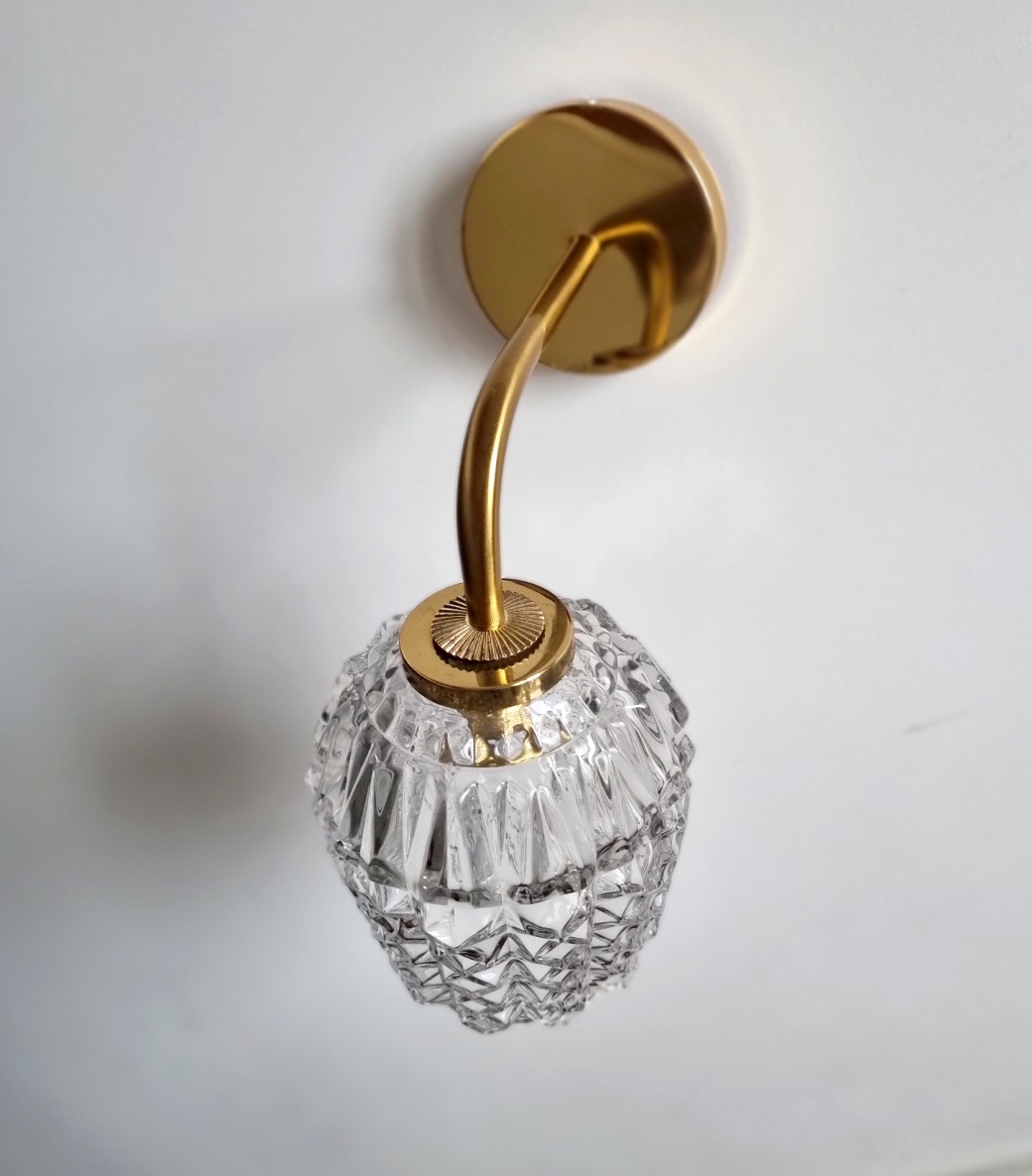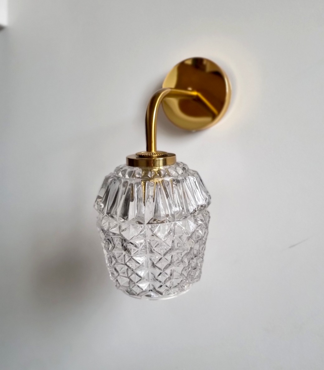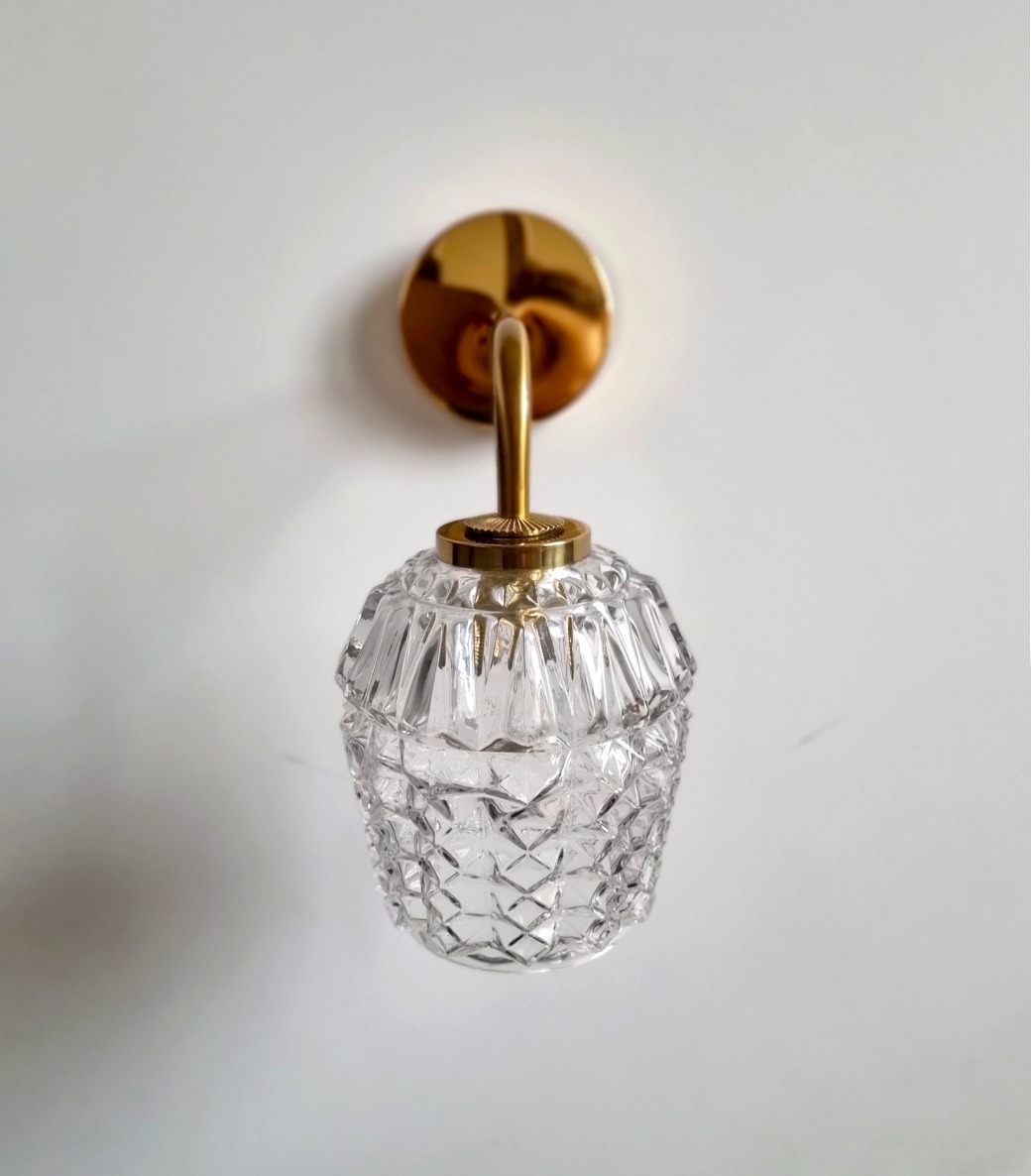 Applique murale alliant laiton et verre pour apporter une touche d’élégance à votre intérieur. Son globe en verre facetté lui offre un style intemporel.
