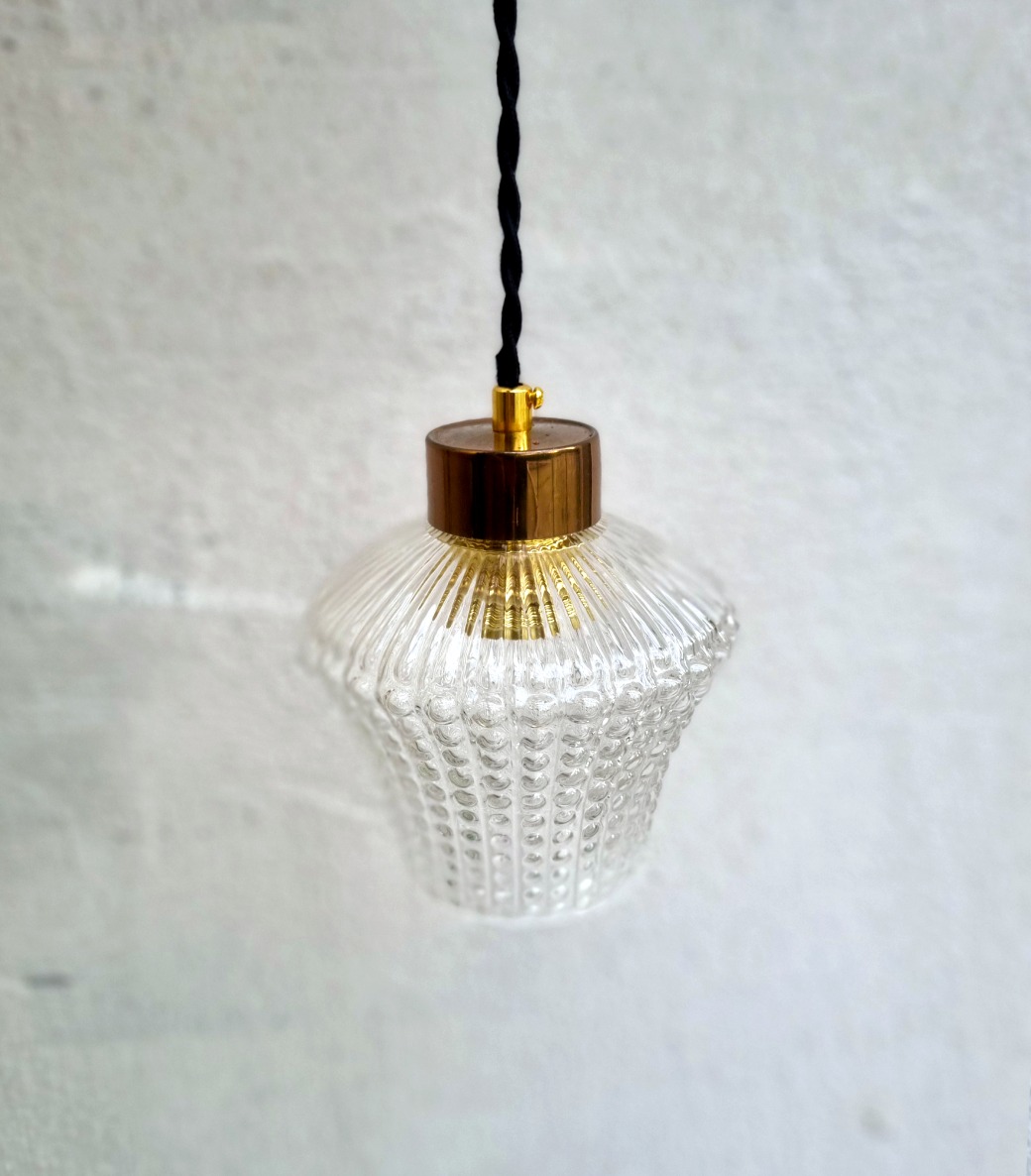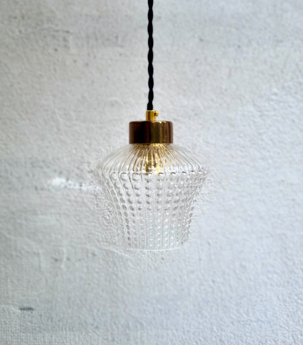 Lampe baladeuse globe en verre seventies et son cordon torsadé noir. L’objet déco vintage, esthétique et fonctionnel. On l’aime suspendue le long d’un mur pour éclairer un bureau, un chevet, une bibliothèque.