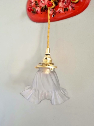 Lampe baladeuse globe en verre moulé. Une baladeuse vintage chic à suspendre ou à poser en lampe de bureau ou lampe de chevet.