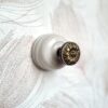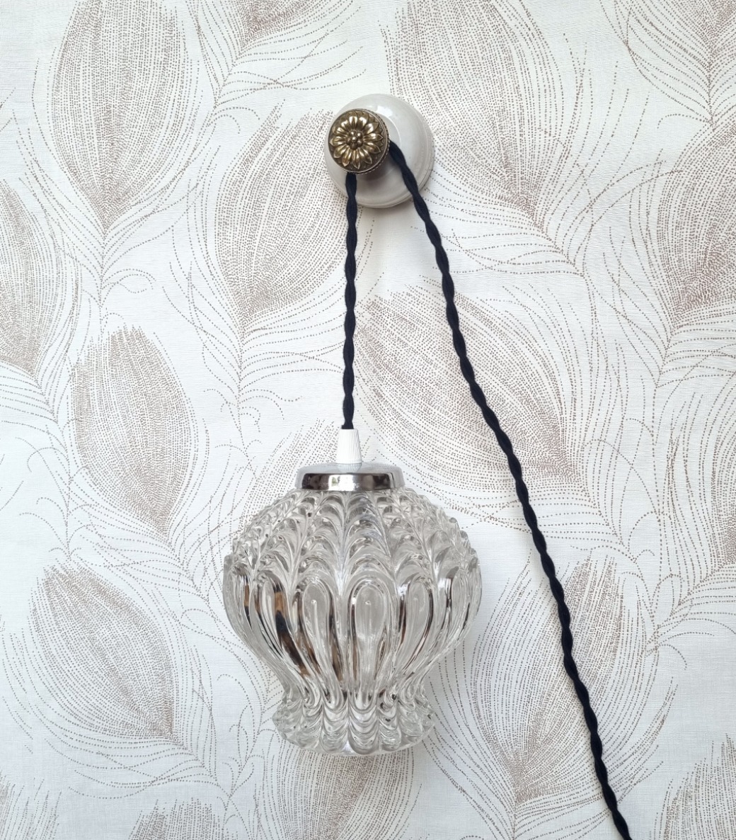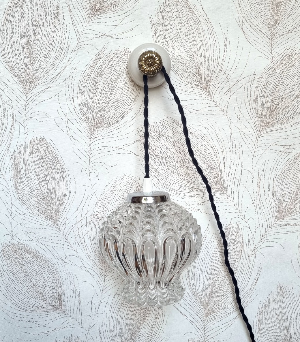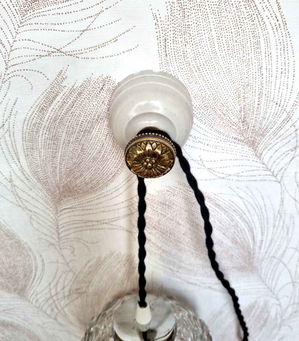 Patère en porcelaine moulurée et son bouton en laiton décorative. Son bouton floral permet de passer de suspendre votre lampe baladeuse le long d’un mur avec style et où vous souhaitez !