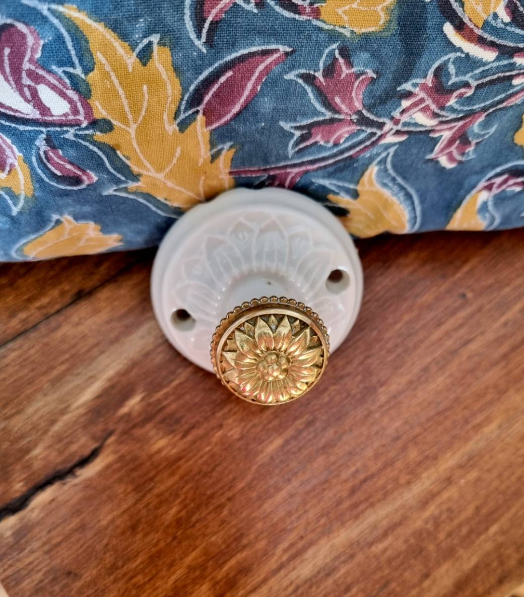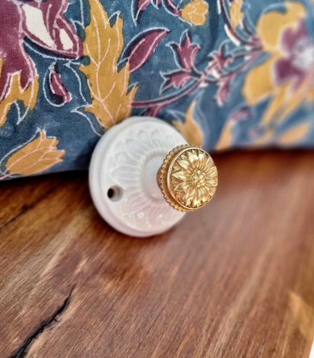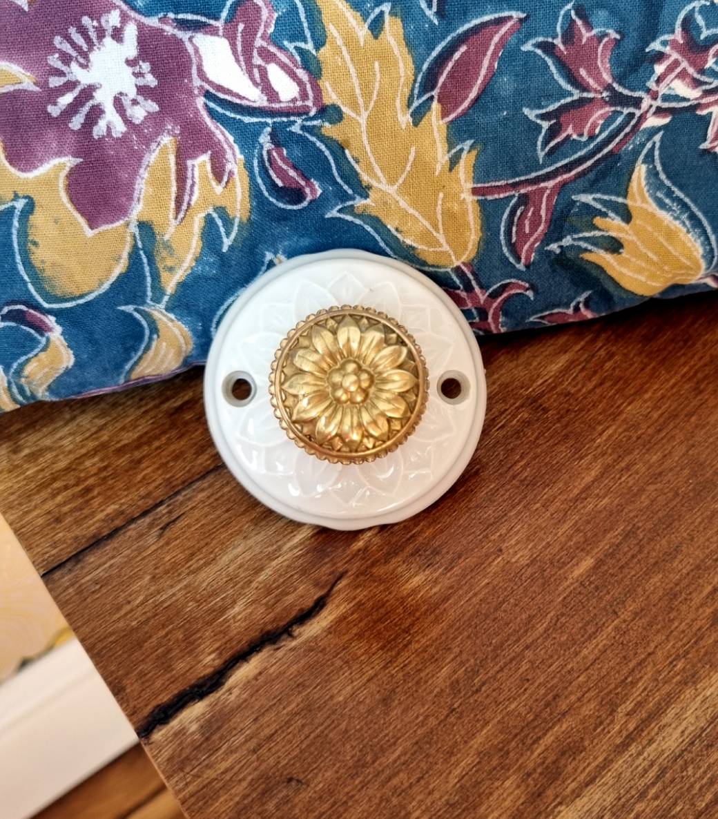 Patère en porcelaine et laiton pour suspendre votre lampe baladeuse le long d’un mur avec style. Une création unique et upcycling.