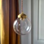 Elégante suspension globe en verre seventies surplombée d’une griffe en laiton. Coup de cœur absolu pour sa ligne ambrée qui rappelle les globes Murano.