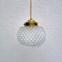 Elégante suspension globe boule pointe de diamant surplombée d’une griffe en laiton. Coup de cœur absolu pour son motif sous le globe !